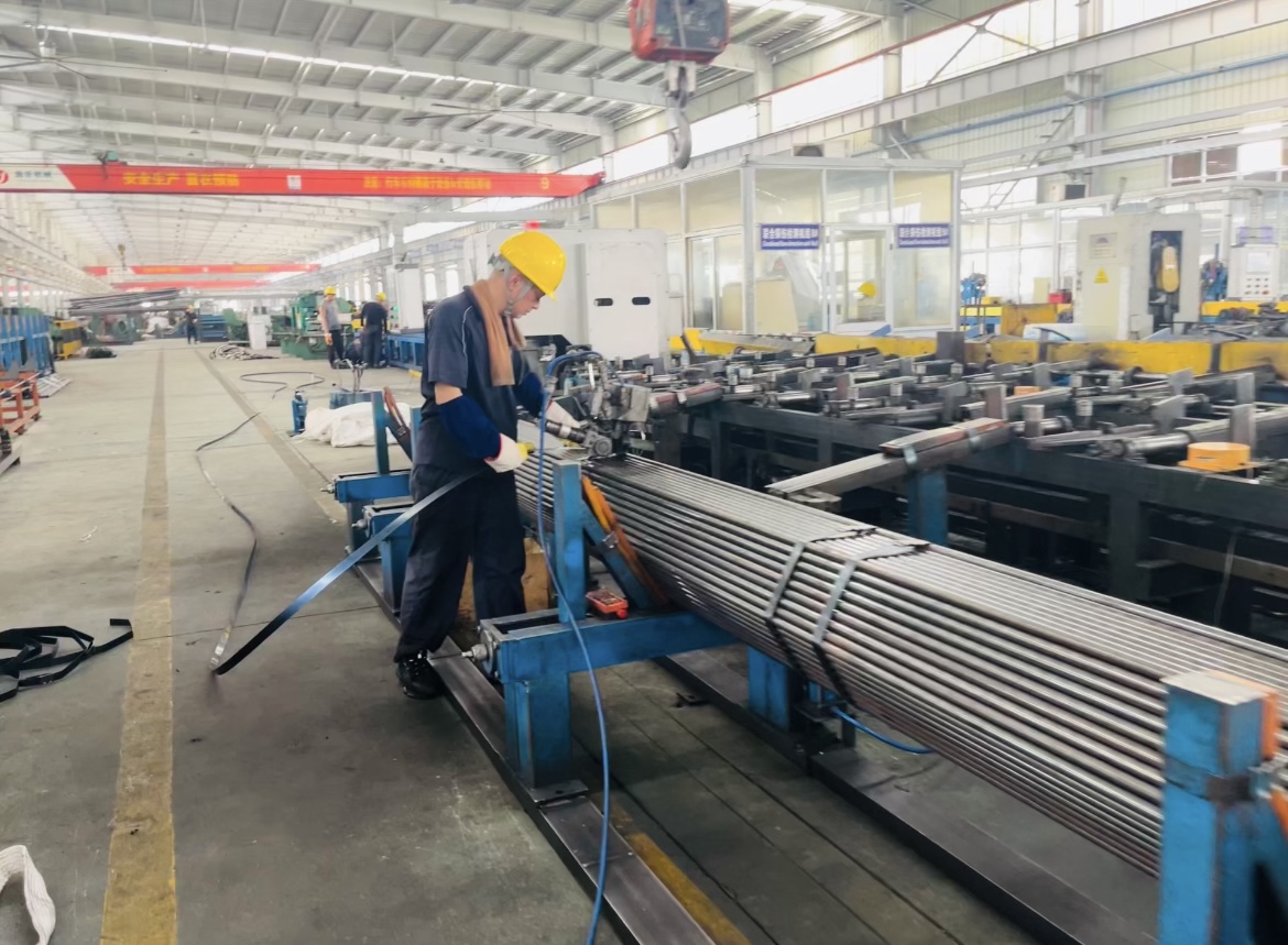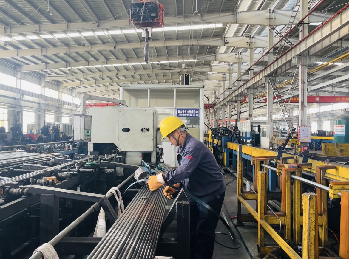 比賽計時開始,參賽選手從對鋼管進行鐵皮扎捆固定到安全平穩(wěn)的將鋼管稱重并吊運放置在成品料架內(nèi)的操作一氣呵成。